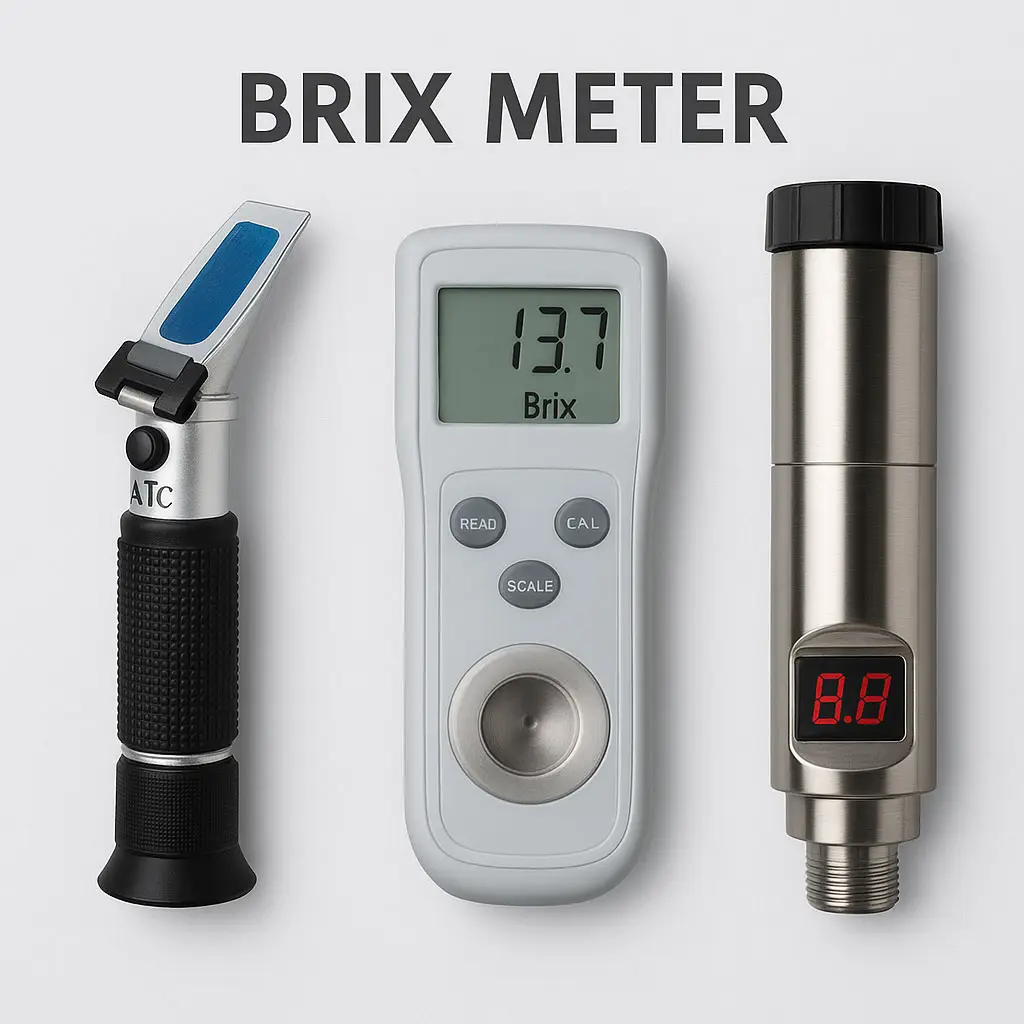 Brix Meter adalah alat ukur yang digunakan untuk mengukur kadar gula terlarut (sukrosa) dalam suatu cairan. Perangkat alat ukur ini merupakan salah satu jenis alat ukur paramater air untuk menentukan kualias cairan. Seringkali diperlukan di liquid mixing manager atau liquid composer manager pada industri MDK ( Minuman Dalam Kemasan ) dan industri lainnya.